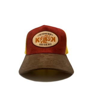 Gorra Trucker 5 paneles TIPO US en suede y Ean’s con bordado K, modelo de malla transpirable, sujeción y ajuste por un Snapback en la parte trasera.