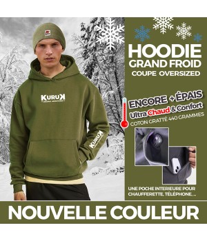 Sudadera 70% algodón hilado en anillos, 30% poliéster reciclado - ¡MUY GRUESA (440g/m²) y cálida! Kuruk con capucha forrada, sin cordón.